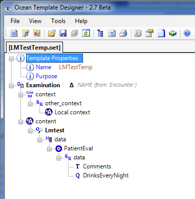 Up until now, we’ve focussed on TDO mechanism as an option for representing clinical models in the software development context. It is true that the TDO option helps developers manage the clinical logic, but it is not the only option the Ocean stack provides. The Template Designer has a mechanism called the Template Data Schema (TDS from now on) which is similar to TDO, but uses XML instead of C’# as the target for autogeneation of artefacts.